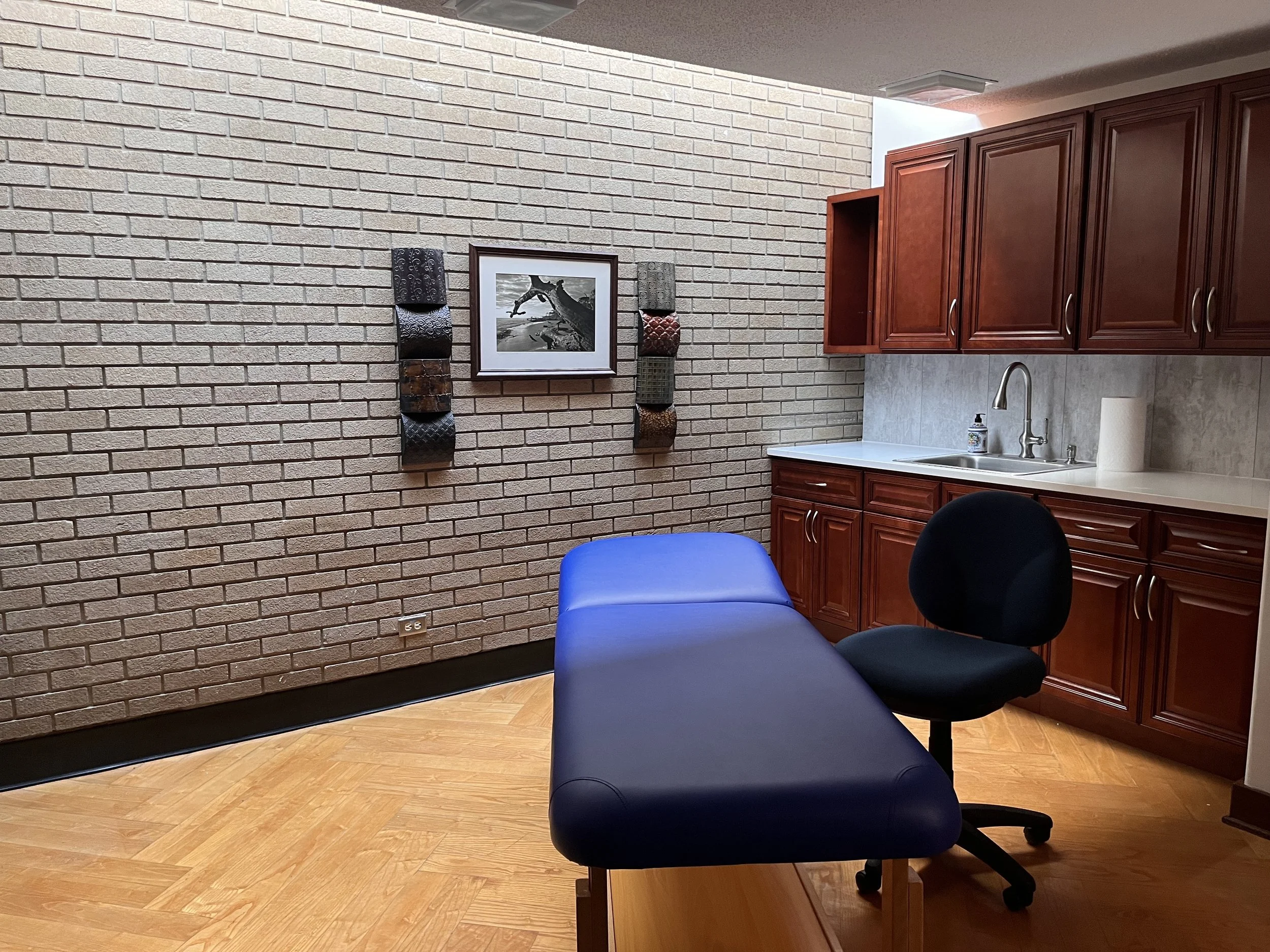 A giant skylight runs the full length of one wall highlighting the beautiful masonry and chevron flooring done when this building was built. Access to its own sink. Beautiful new quartz countertops and cabinets. Plenty of room for anything you want this space to be! Just check out the video and photos and give me a call to come see it in person! Only $600/month including utilities.
